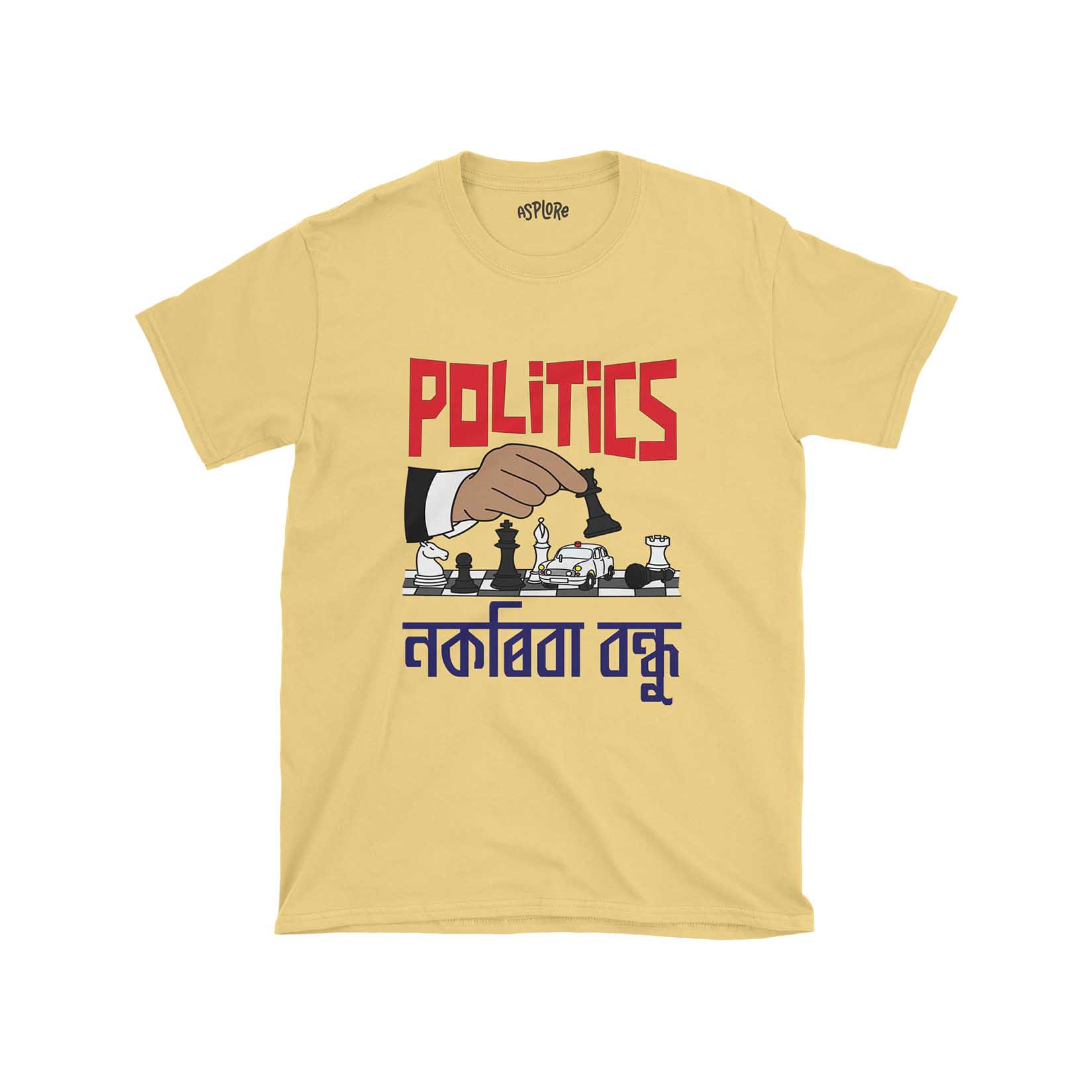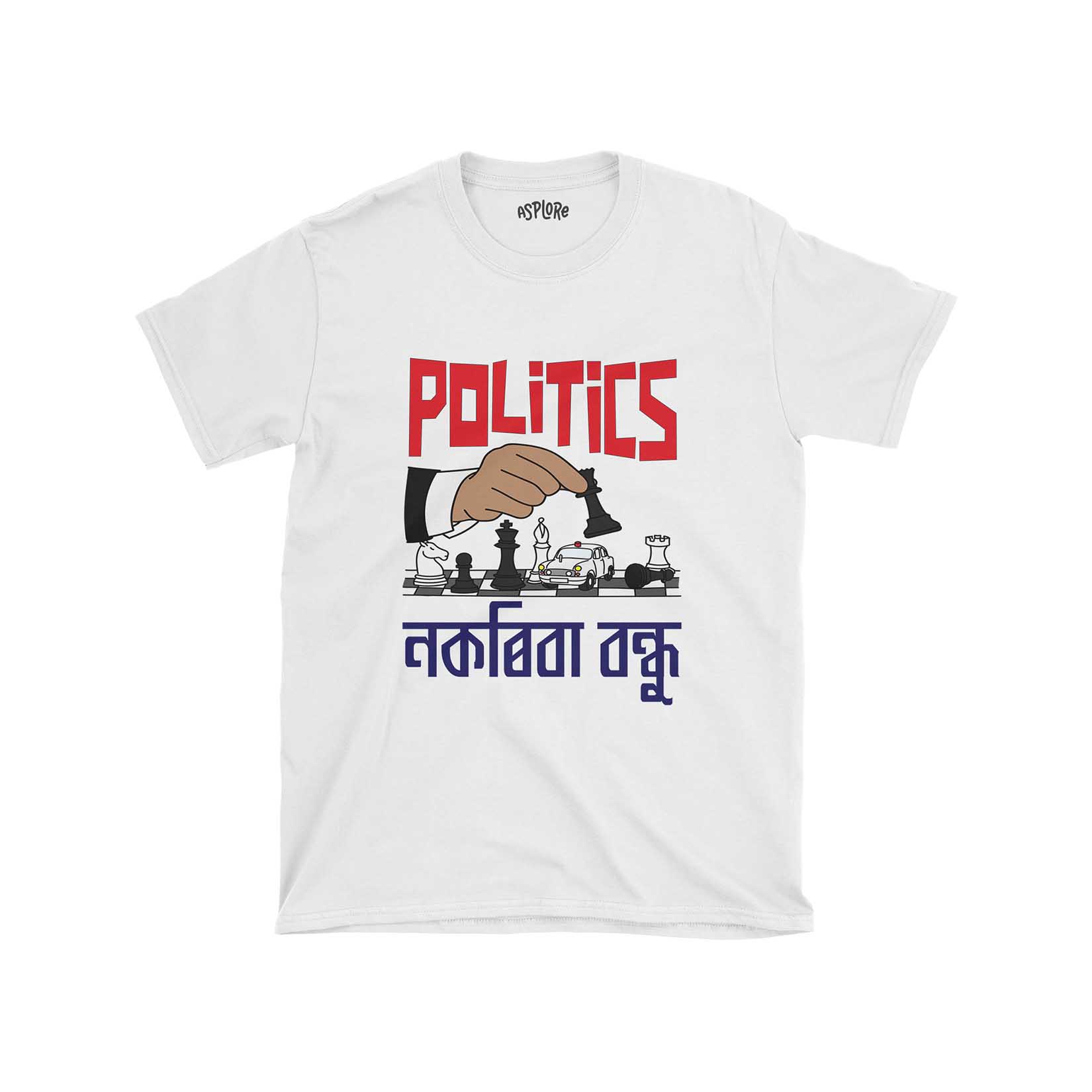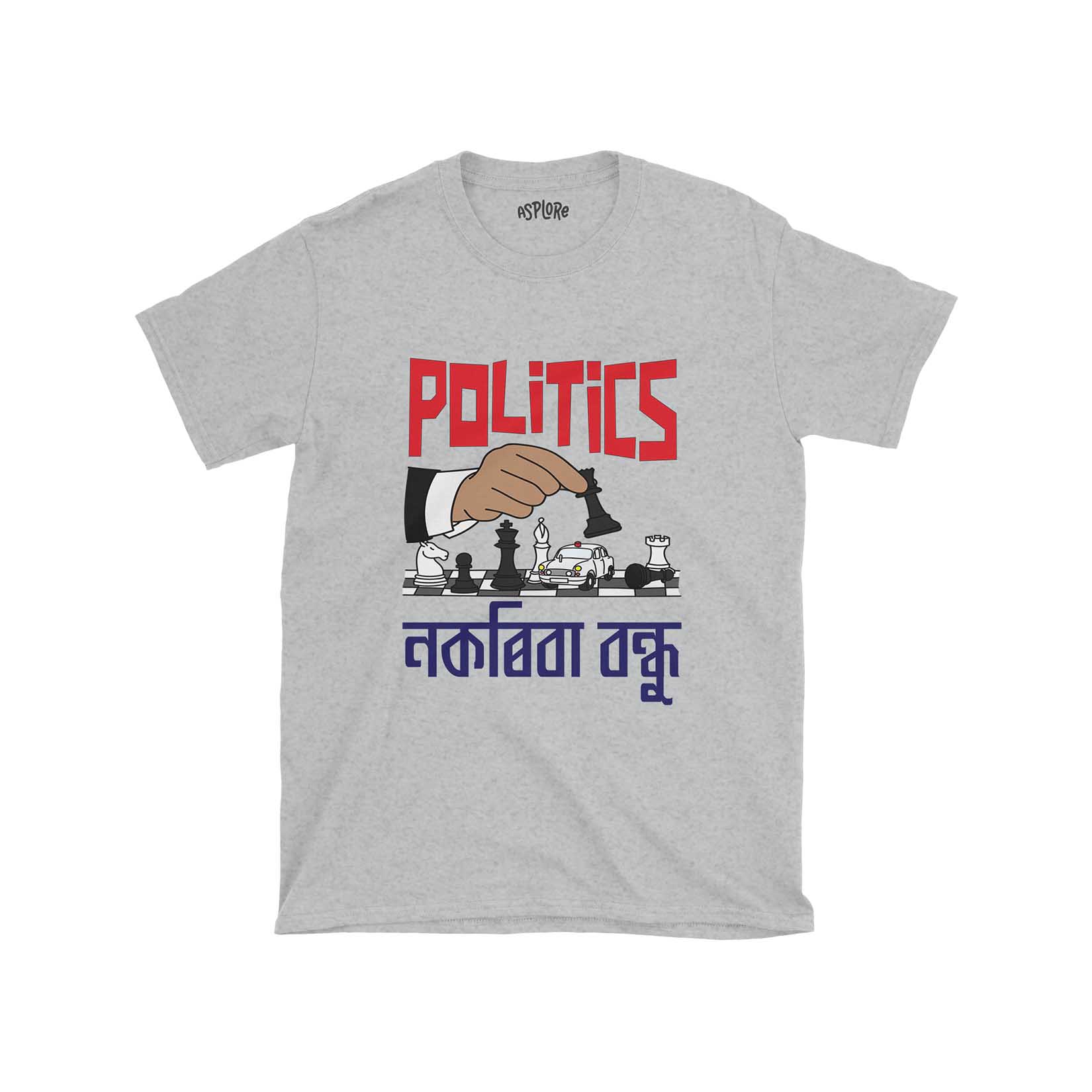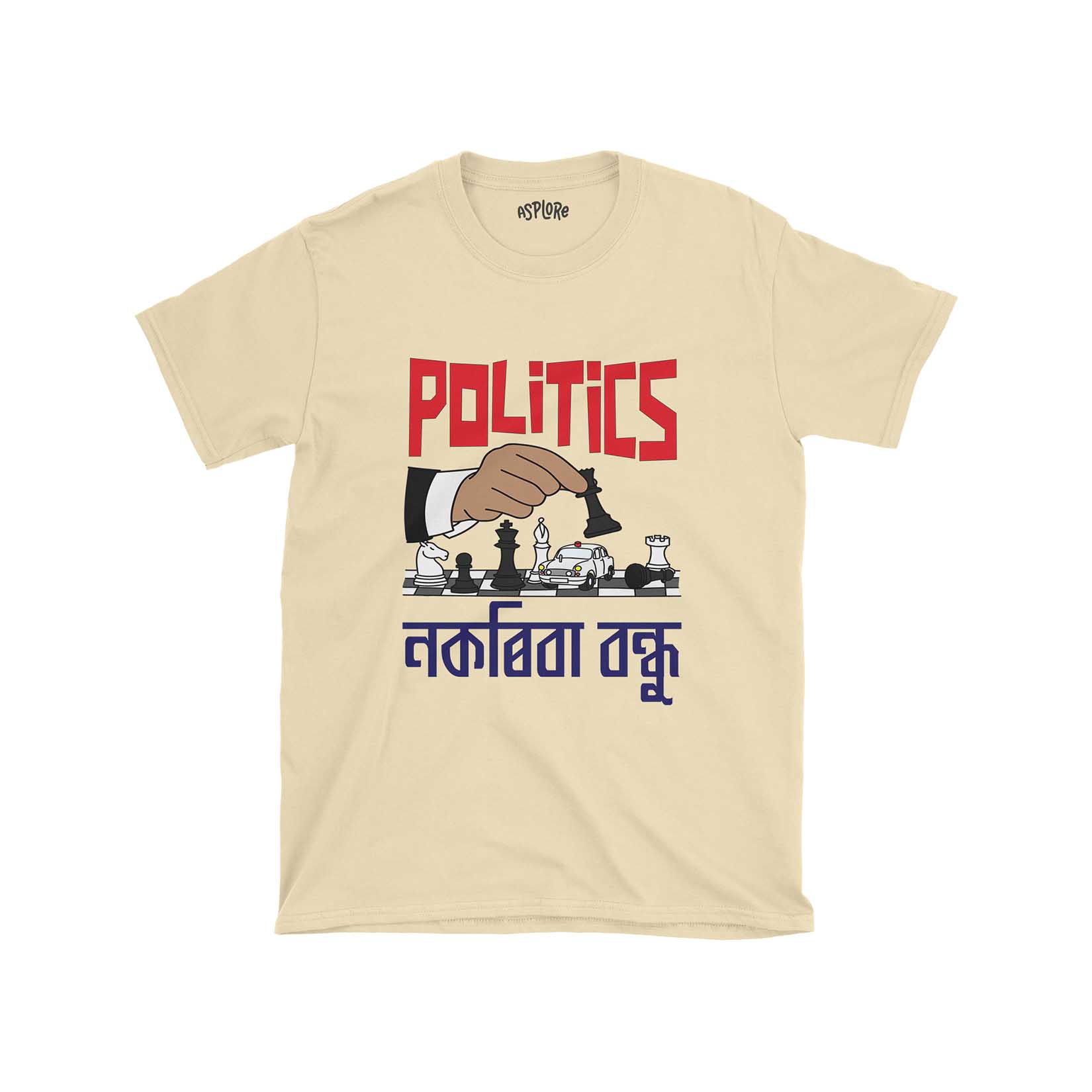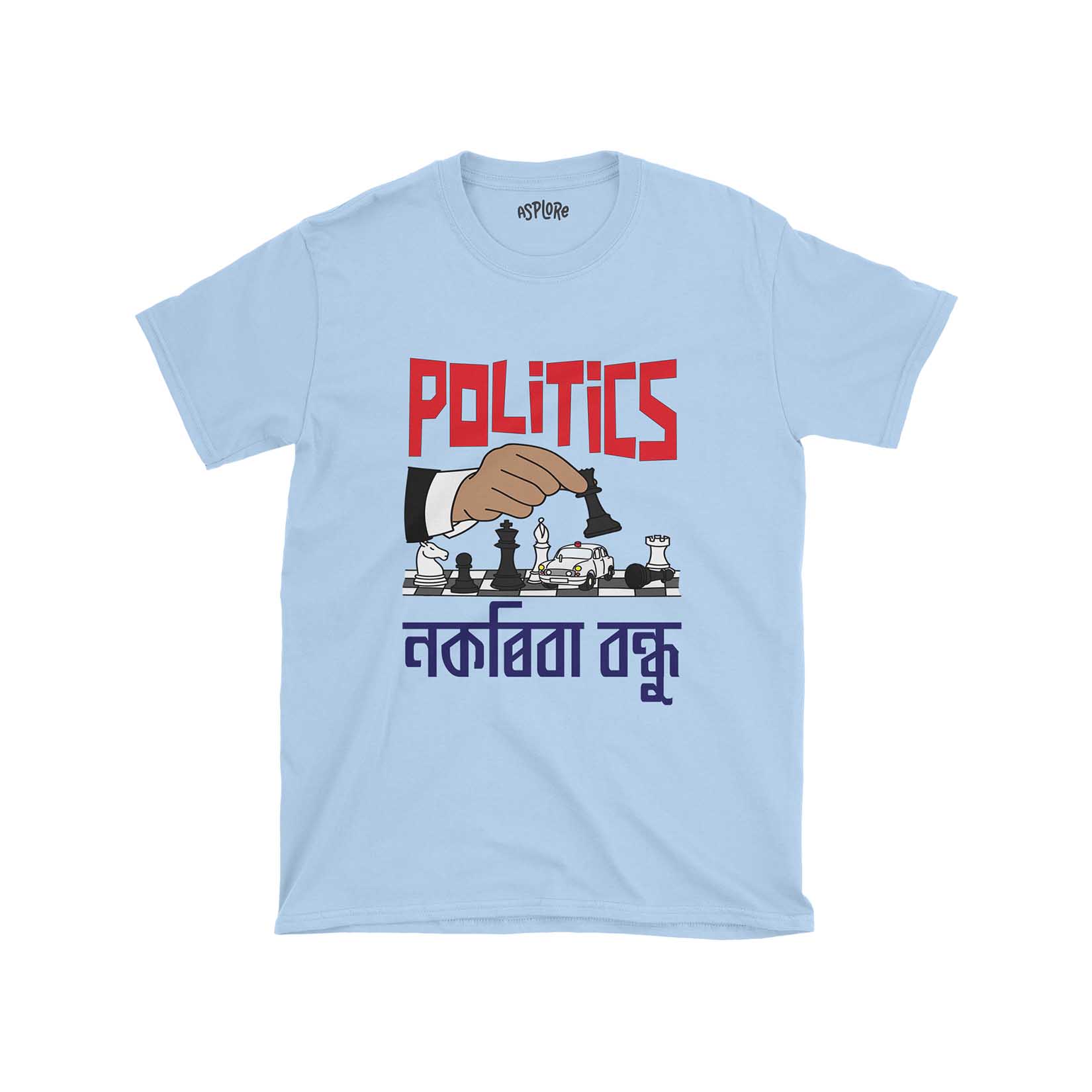 + Free ShippingThis shirt makes a powerful statement. Through its striking graphics and iconic caption, it critiques the unpredictable and often manipulative world of politics. Every design element, from the falling pawn to the Ambassador car with its glaring red light, captures the essence of political maneuvering and the dangerous games often played behind the scenes. The image of a hand playing chess, controlling the game, and causing a pawn to fall is a powerful representation of the often callous nature of politics, where pawns can be sacrifices in the greater game. The inclusion of an Ambassador car, a classic symbol of VIP culture, on the chessboard speaks volumes. With its red light, it signifies the undue influence and power politicians wield, often manipulating outcomes in their favor. The caption, “Politics nokoriba bondhu,” is Zubeen Garg’s lyrics from a song that resonates with many in Assam. This call to “Stay away from politics, my friend!” is a profound piece of advice, a warning, and a plea wrapped into one. It’s a call to consciousness and an invitation to question. Join the narrative and be a part of the change.